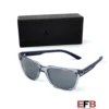 Shape: Square. Lens Width: 56 mm. Lens Bridge: 17 mm. Arm Length: 140 mm. 100% UV protection. Polarized. Frame Material: Plastic. Frame Color: Shiny Transparent Blue. Lenses Type: Polarized Blue. Rim Style: Full-Rim.