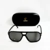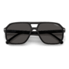 Shape: Navigator. Lens Width: 59 mm. Lens Bridge: 15 mm. Arm Length: 145 mm. 100% UV protection. Polarized. Frame Material: Plastic. Frame Color: Black. Lenses Type: Polarized Grey Green. Rim Style: Full-Rim.
