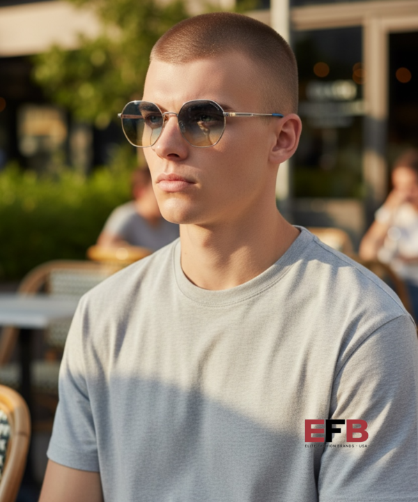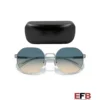 Lens width 56.0 mm, Arm length 140.0 mm, Bridge width 20.0 mm, Detailed frame color Shiny Silver, Detailed lens color Blue Yellow Gradient, Frame color Silver, Frame material Metal, Frame shape Irregular, Lens color Multi, Lens protection 100% UV Protection.
