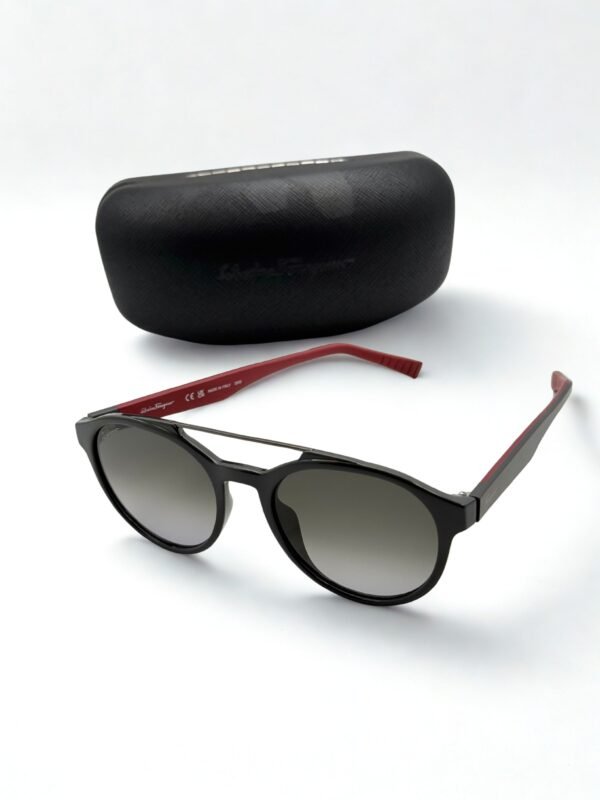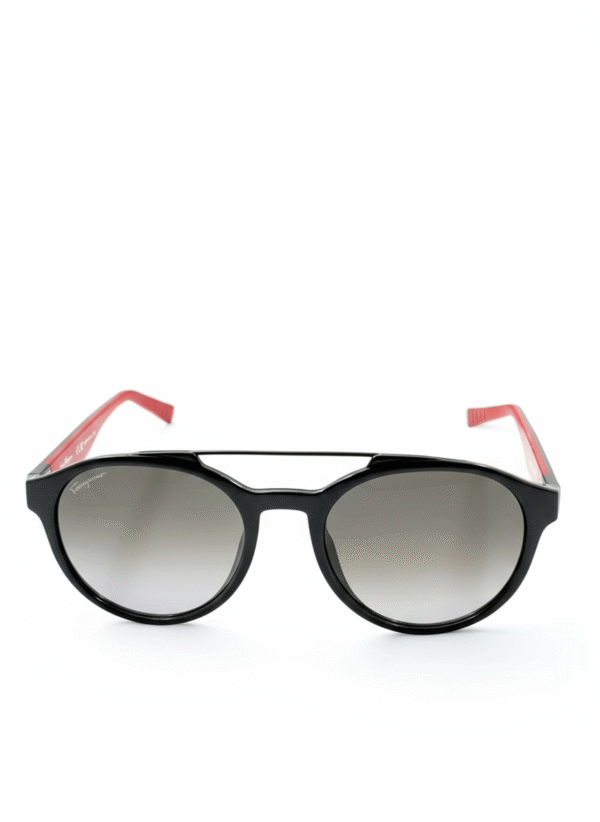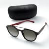 Size: 53. Shape: Pilot. Lens Width: 54 mm. Lens Bridge: 19 mm. Arm Length: 150 mm. 100% UV protection. Non-Polarized. Frame Material: Plastic. Frame Color: Dark Grey, Red. Lenses Type: Dark Grey. Rim Style: Full-Rim.