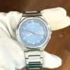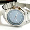 This timepiece features a captivating blue sunray dial with simple three-hand analog display, ensuring clear readability. Powered by an efficient solar-powered quartz movement, it charges from any light source, eliminating the need for battery replacements. Housed in a 45mm silver-tone stainless steel case and paired with a matching stainless steel bracelet, this watch offers 50 meters (5 ATM) of water resistance and is protected by a durable Mineral Crystal. 2 Years Limited Warranty.