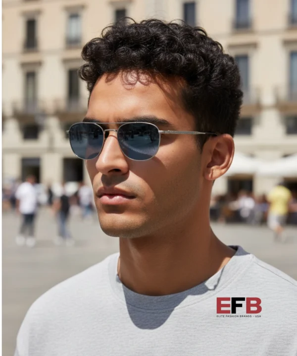 Shape: Pilot. Lens Width: 55 mm. Lens Bridge: 19 mm. Arm Length: 145 mm. 100% UV protection. Non-Polarized. Frame Material: Metal. Frame Color: Silver. Lenses Type: Azure. Rim Style: Full-Rim.
