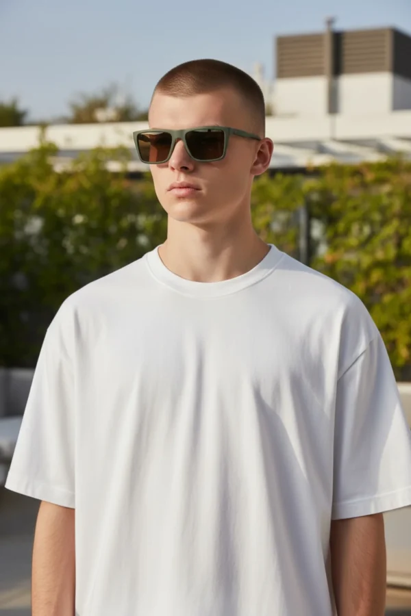 Shape: Square. Lens Width: 56 mm. Lens Bridge: 19 mm. Arm Length: 145 mm. 100% UV protection. Non-Polarized. Frame Material: Plastic. Frame Color: Matte Khaki. Lenses Type: Brown. Rim Style: Full-Rim.