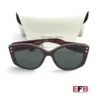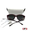 Shape: Cat Eye. Lens Width: 54 mm. Lens Bridge: 16 mm. Arm Length: 140 mm. 100% UV protection. Frame Material: Plastic. Frame Color: Merlot Logo Print. Lenses Type: Dark Grey. Rim Style: Full-Rim.