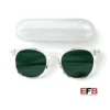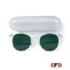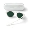 Lenses are made up of 44% plant-based material, 4-base flat lens and slim profile provide everyday coverage Durable, no-screw hinges snap and stay closed