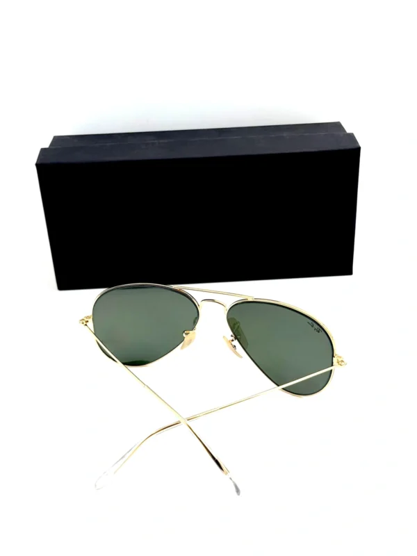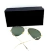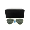 Size: 55-14. Shape: Aviator. Lens Width: 56 mm. Lens Height: 47.5 mm. Lens Bridge: 14 mm. Arm Length: 135 mm. 100% UV Protection. Non-Polarized. Frame Material: Metal. Frame Color: Arista. Lenses Type: Green. Rim Style: Full-Rim.